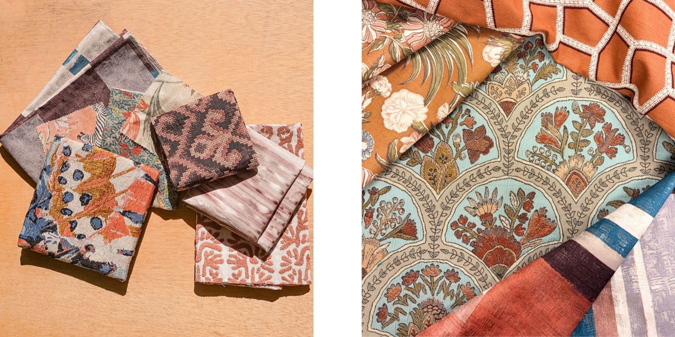 No. Fabric led the palette here. Color was secondary. Normally we’d start by defining the color story, but Anthology just started separating itself naturally. We did end up organizing into colorways because some designers are very specific about the lanes they work in — and it helps narrow their process.