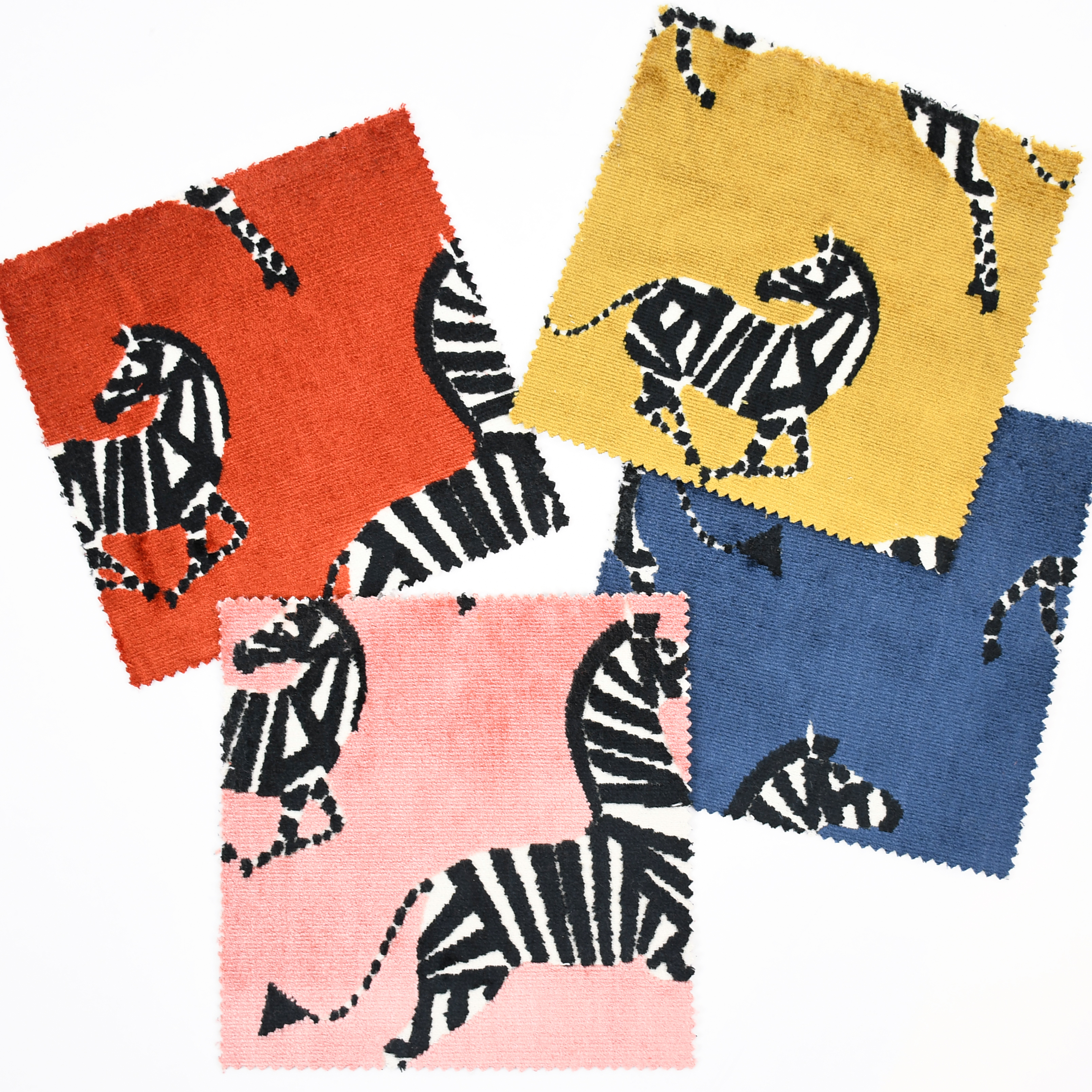 For a bolder take on earthy color, select a playful fabric like this funky cut velvet with zebra motifs, available in four colorways.