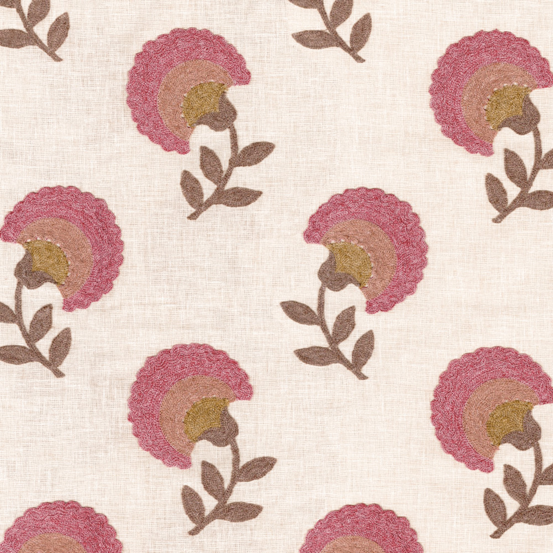 55% Polyester, 40% Cotton, 5% Linen With 60% Polyester, 25% Cotton, 15% Linen Embroidery